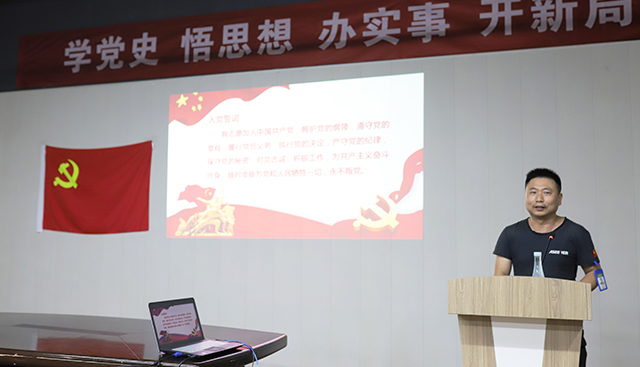 在此次黨史學(xué)習(xí)會(huì)上,西迪黨支部書記吳小琴同志帶領(lǐng)全體黨員一起重溫入黨誓詞,黨員同志高舉右拳,面向黨旗莊嚴(yán)宣誓,神圣而莊嚴(yán)的時(shí)刻,讓我們作為中國(guó)共產(chǎn)黨的一分子由衷的感覺到驕傲。