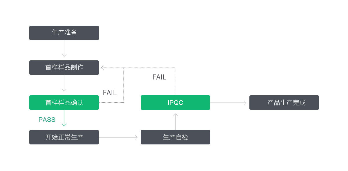 建立健全的質量管理制度,針對生產加工控制過程建立來料檢驗(IQC),過程檢驗(IPQC),終檢(FQC),出貨檢驗(OQC)四個階段檢驗,全方位控制產品質量。嚴格控制原材料質量,嚴格執行各工序的工藝參數,嚴格執行檢驗過程,依據檢驗規范及客戶要求等進行有序管控,確保產品出貨質量滿足客戶需求。